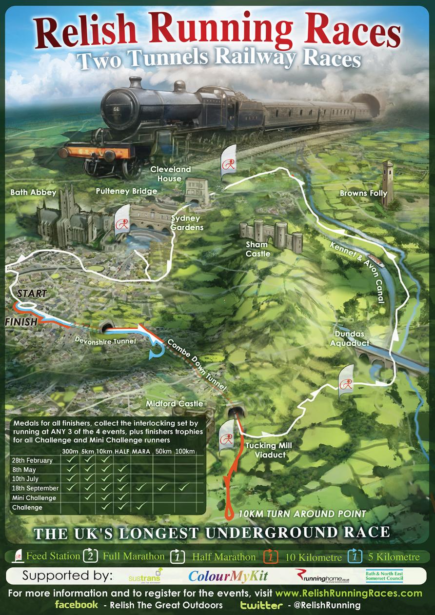 A truly special race that not only takes in many of Bath's beautiful attractions, but also has the longest underground section for each race distance in the UK!