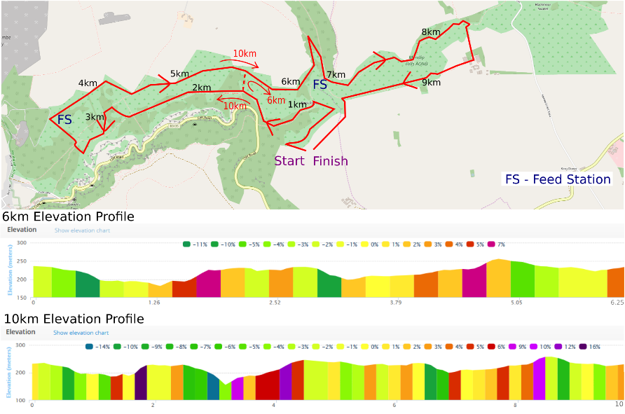 There is approximately 240m height change across the race which comes in at 10km in distance.