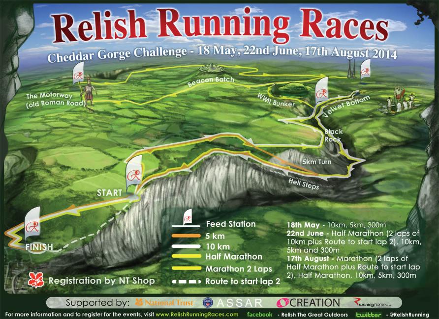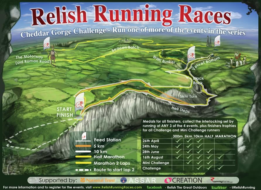 Relish Running, alongside Channel Events (mountain biking) and Mendip Lumps and Bumps ride (road cycling) are organising the Top of the Gorge Adventure Weekend, a full weekend packed with great ways to explore Cheddar and the Mendip Hills on two feet or two wheels.