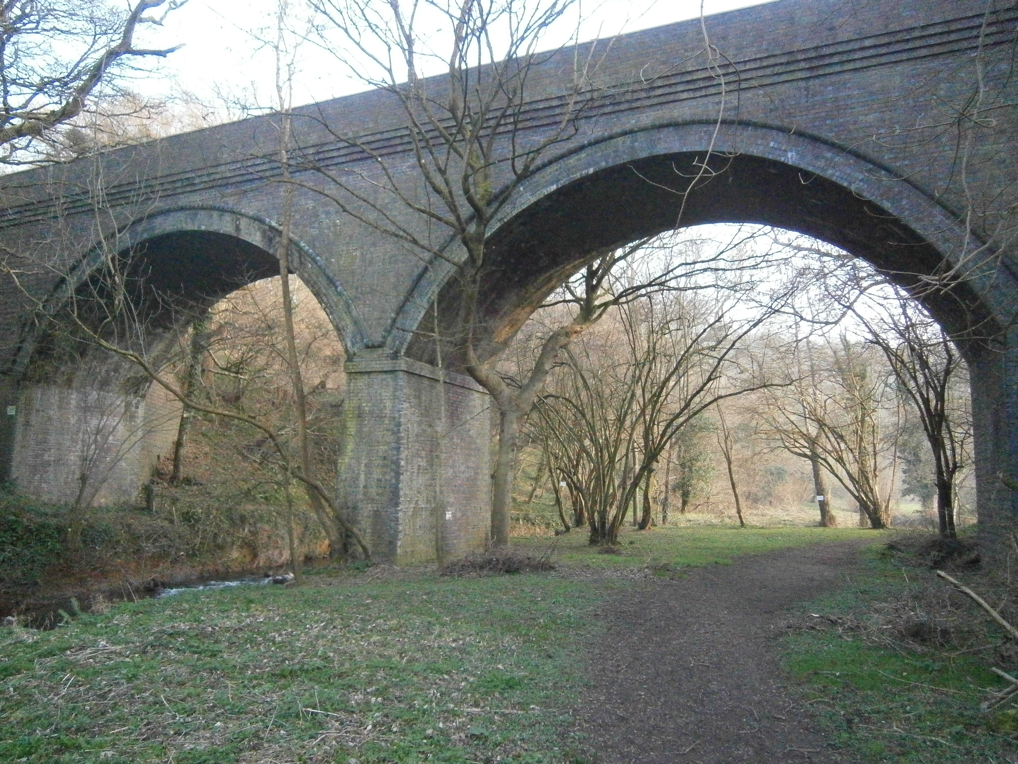 crossing the viaduct and towards the steps to Tucking Mill reservoir.