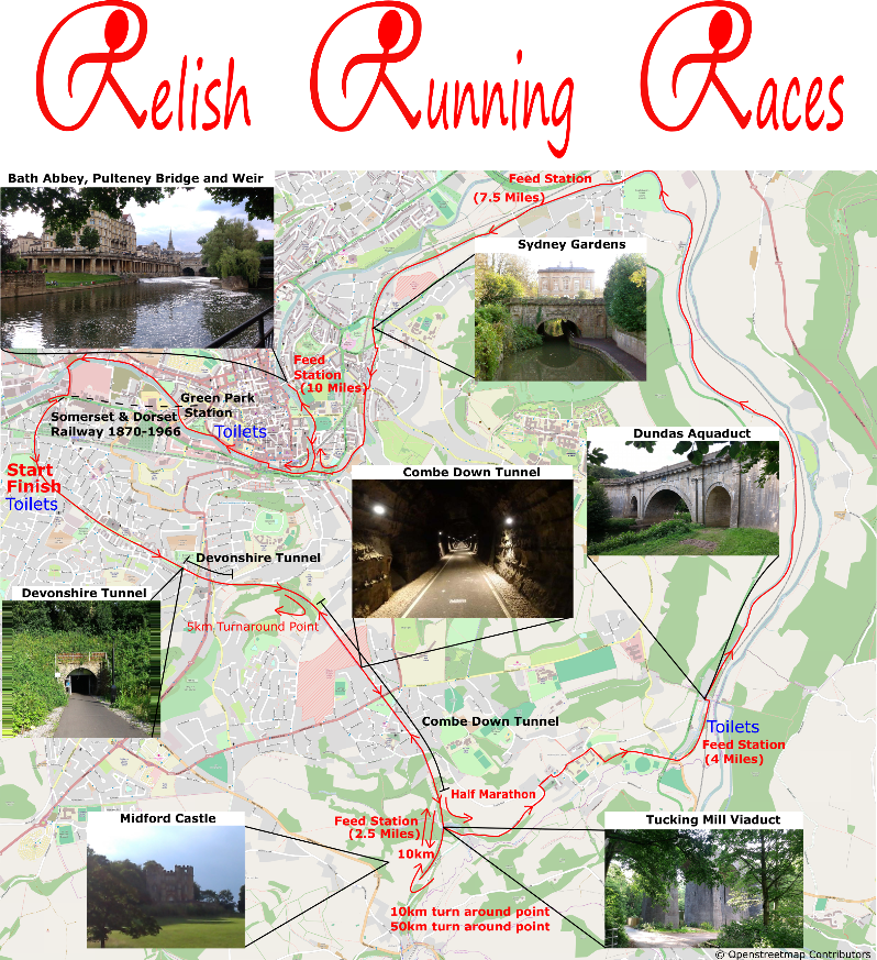 The 1 lap looped Two Tunnels Half Marathon course takes in the the best of the countryside views along the Limpley Stoke Valley as well as beautiful city centre running through the heart of Bath along the footpaths and riverside trails.