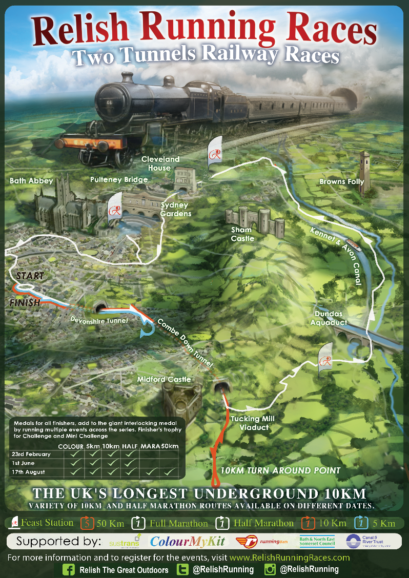 We are very happy to be supporting the ongoing work of Sustrans in maintaining the Two Tunnels by contributing £1 per runner to their charity. Looking to fund raise as part of your run, why not raise money for Sustrans? You will get a lovely free running vest and other goodies. Find our more here. Over £30,000 have been raised to date!