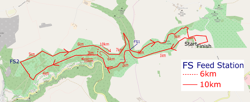 After a descent you will reach the first drinks station again, there is another drinks station (FS1 ont the map below). 6km and 10km runners need to go straight ahead, as shortly after the drinks station the Half Marathon runners will branch off left (Sunday races). The area ahead is steeped in history; the whole area has been extensively mined from the Roman times through to Victorian. This area is generally flat, though runners will have to clamber over 10ft high walls which form the old mineral settling pools from the lead mines.