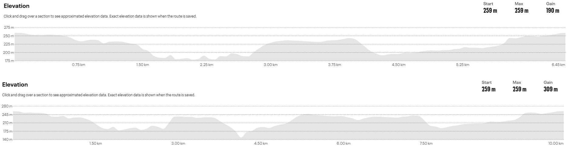 There is approximately 240m height change across the race which comes in at 10km in distance.