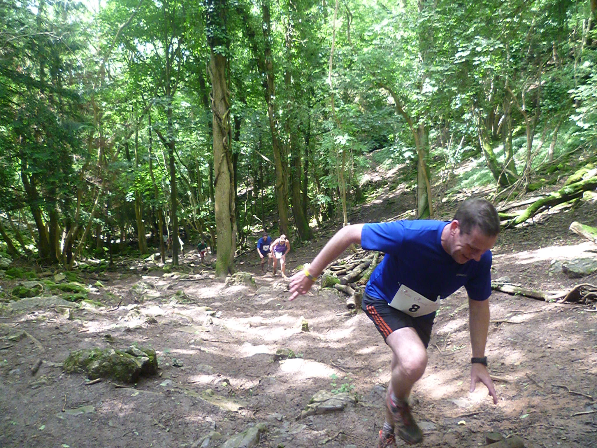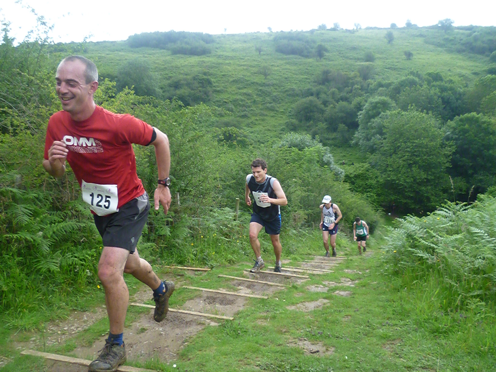 2-2.5km is a gentle downhill, leading into some more technical sections with little rises through woodlands. After 2.5km there is a split, the 6km runners branch off and make a right turn and start their climb up the valley. 10km runners (and half / marathon runner) process straight ahead, through a kissing gate and then on to start the climb of the infamous Hell Steps. Not one, but two rather large flights of steps which will bring you to the most amazing view.