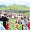 Beyond the 5km point there is another little rise where you can take in the views again over your right shoulder. After some open fields, there is a short, steep and stoney descent - take care here. You will also see runners from the 6km race joining you at the point. Both routes converge and carry on up the other side of the dip.