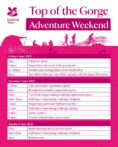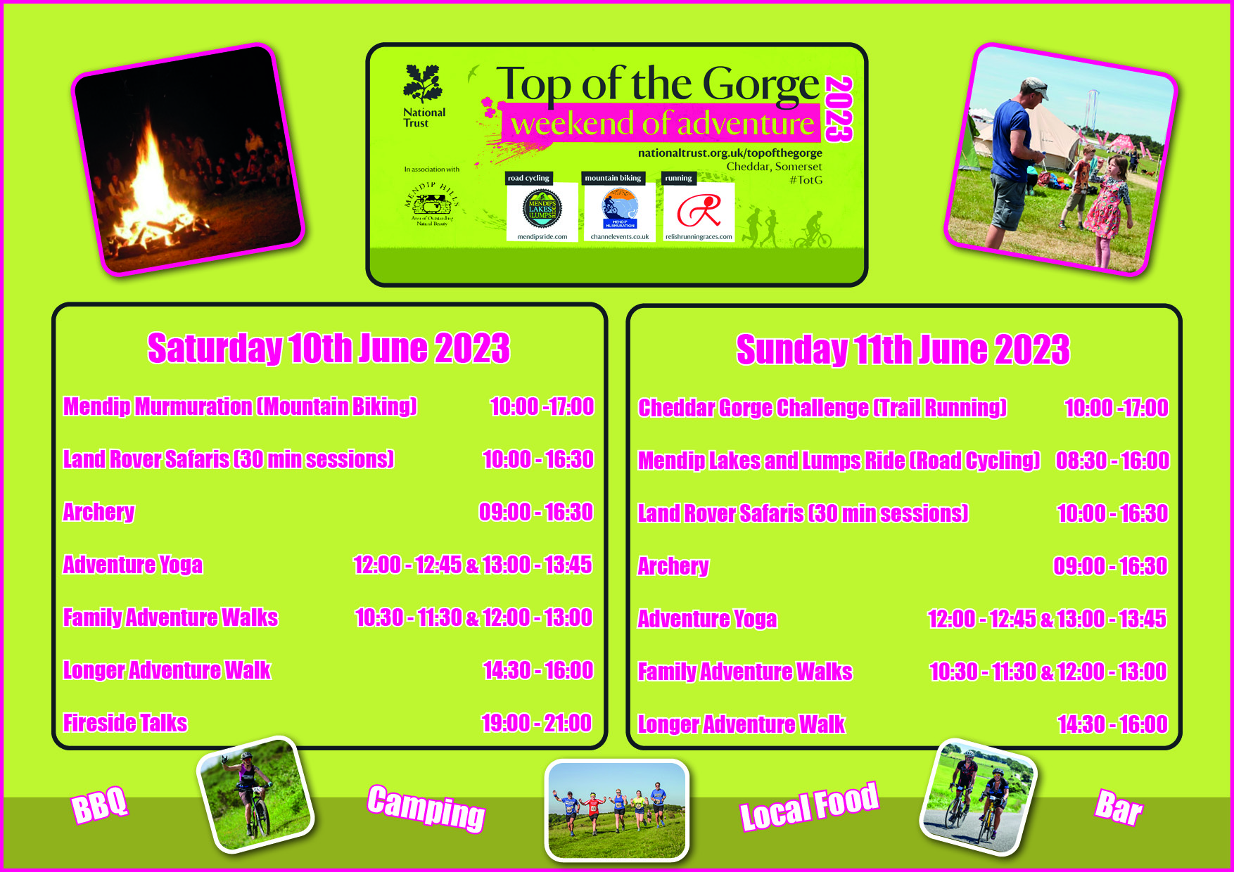 Relish Running, alongside Channel Events (mountain biking) and Mendip Lumps and Bumps ride (road cycling) are organising the Top of the Gorge Adventure Weekend, a full weekend packed with great ways to explore Cheddar and the Mendip Hills on two feet or two wheels.