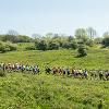 Up ahead is a road crossing, please pay attention to the marshals instructions and only cross when you feel it is safe to do so. The other side of the road, more fields and more climbing, including a beautiful little woodland valley which we hop through. The false horizon finally comes to an end with an old World War 2 bunker, now a rather odd looking grass mound, but integral in it's day. It used to house generators which powered a huge series of lights in the land ahead which we were laid out to mimic the railways of Bristol and were used as a decoy for German bombers.