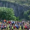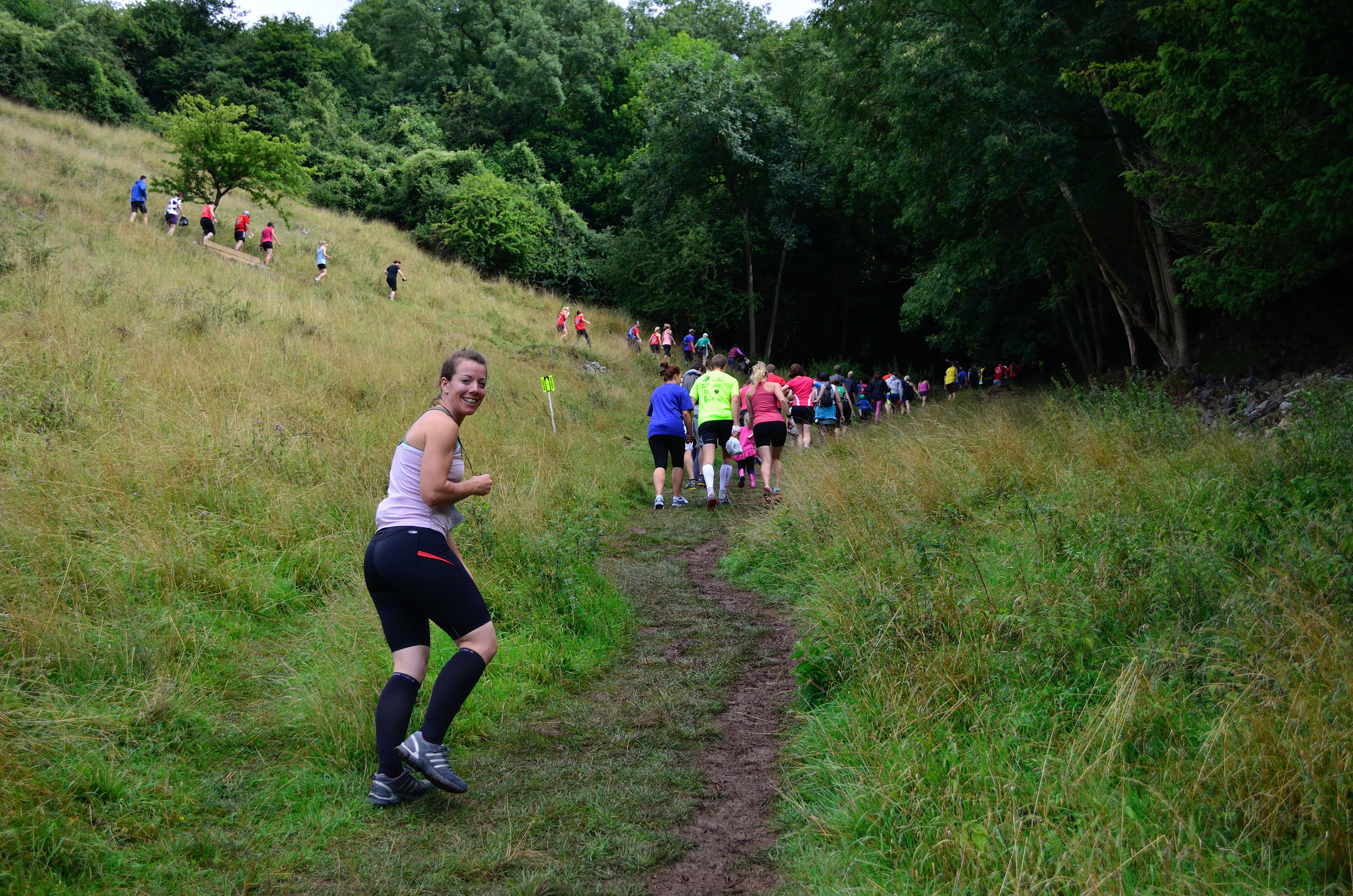 Starting above Black Rock, the first 1km is a gentle meander down hill towards Black Rock, followed by a gentle downhill on a very rocky track. The first climb comes after 1.5km, a short sharp climb off the main track as the route heads towards Cheddar. After 1km, the 6km runners branch off and make a right turn and start their climb up the valley. 10km and Half Marathon runners process straight ahead, hope over a stone stile and start the climb of the infamous Hell Steps. Not one, but two rather large flights of steps which will bring you to the most amazing view looking right down the gorge.