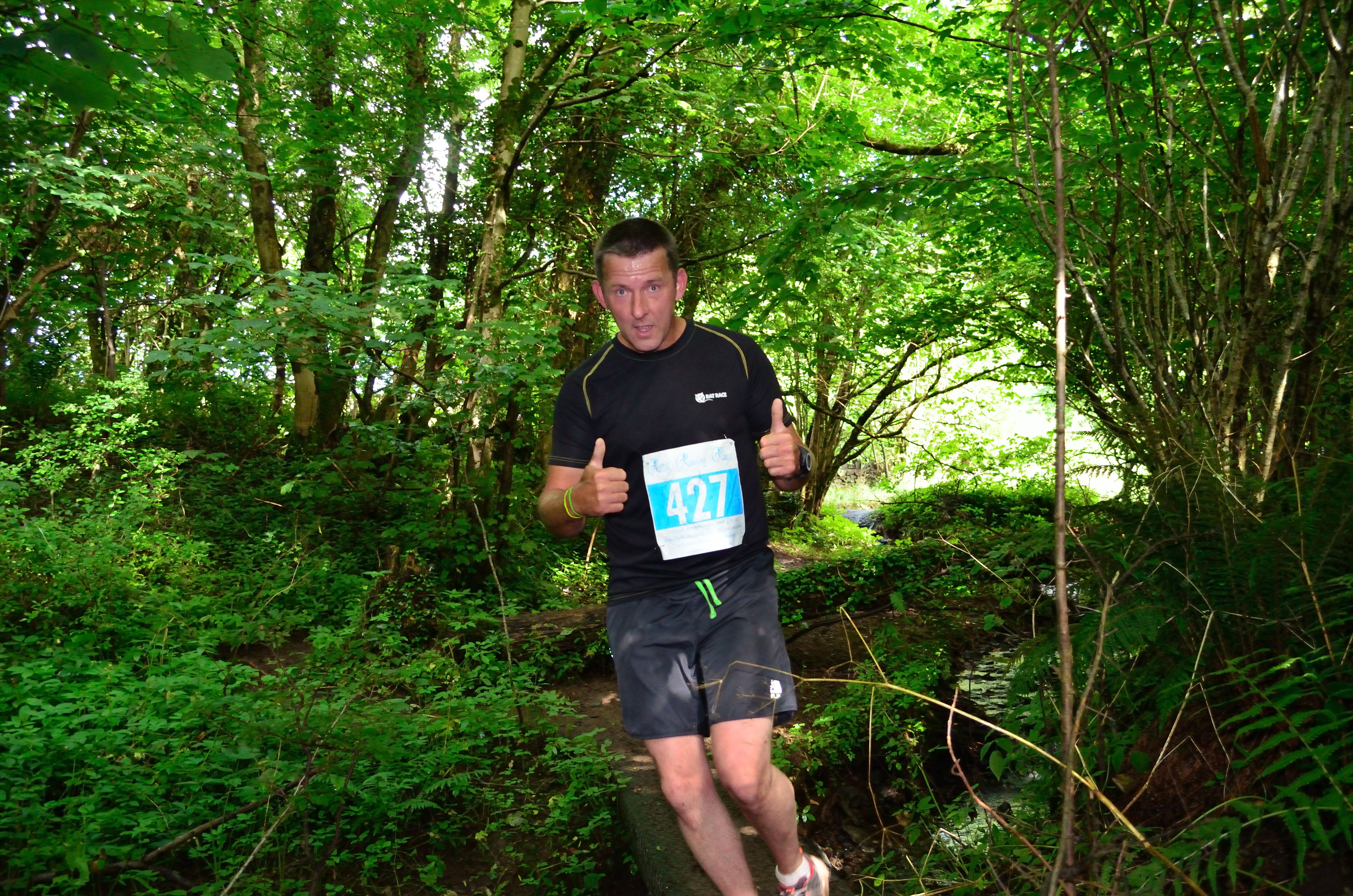 After making a quick 180 degree turn a decent at the 4 mile mark, there is Feed Station ahead. Shortly after the drinks station the Half Marathon runners will turn left off the main track, where as the 6km and 10km runners will go straight ahead. There are open fields and a slight climb to get towards the 5mile marker shortly after which some ducking and weaving will be required to negotiate a little used footpath which will be nice and slippery if wet.