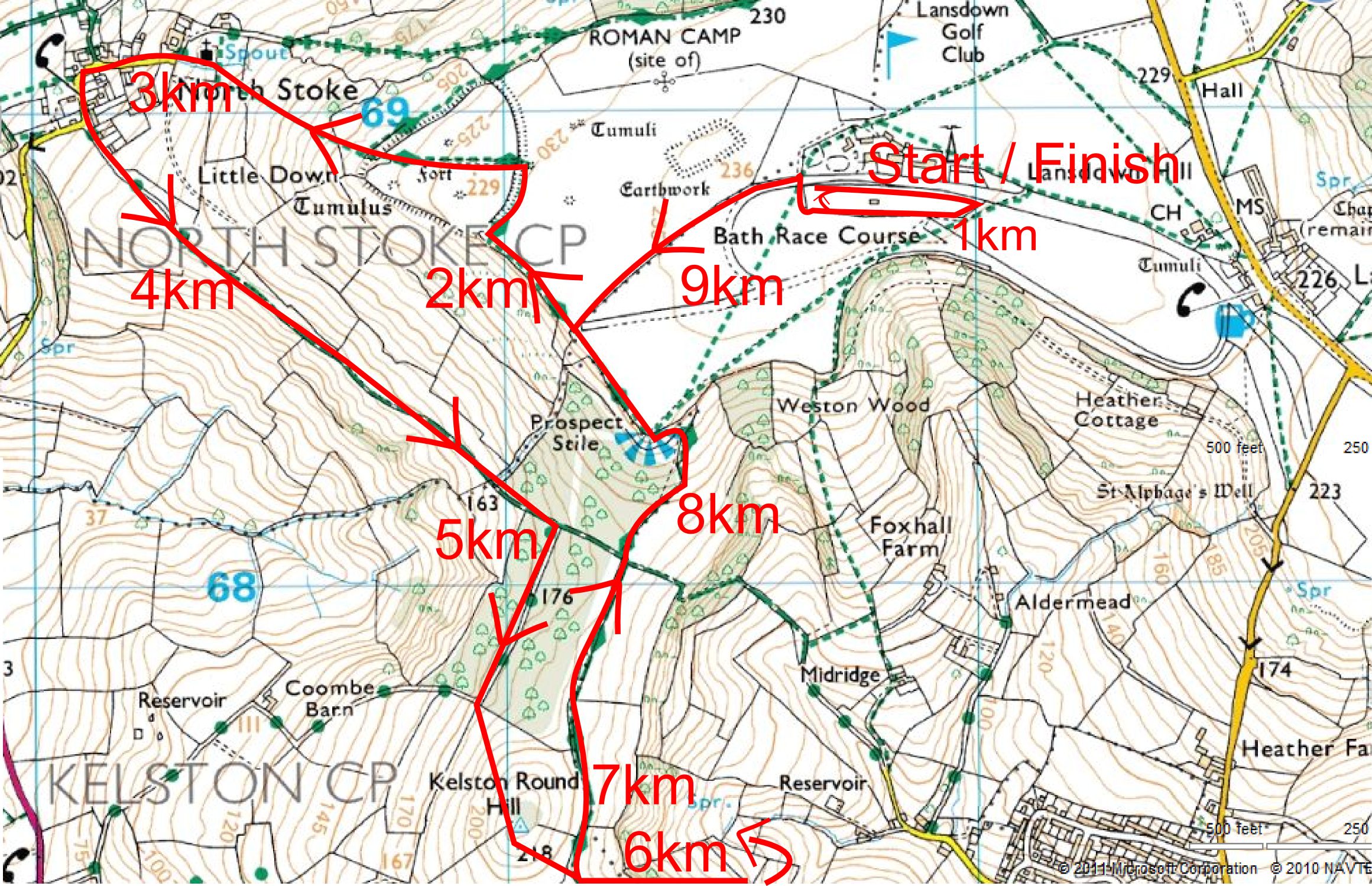 The highlight of the race are the beautiful views across to Bristol and back to Bath which are seen from an old Roman Road, the via julia (the straight section of course at the 5km mark on the map below), and like all Roman Roads, it takes the shortest line between two points, so expect a couple of hills along the way!
